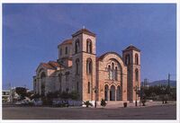 Περιγραφή: Κεντρική πλατεία των Καλυβίων όπου "δεσπόζει" ο υπό ανέγερση ναός του Ευαγγελισμού της Θεοτόκου και τα πανύψηλα κυπαρίσσια (tif) [side1]