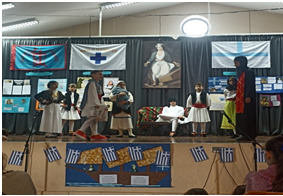 Οι μαθητές της Στ' τάξης με τους δασκάλους τους κ. Μαριγούδη Τότα και κ. Μπάρδα Θάνο και τη συνεργασία της μουσικού κ. Καραφά Σοφίας και της θεατρολόγου κ. Γράψα Νικολέττας παρουσίασαν σήμερα στο σχολείο μια εξαιρετική θεατρική παράσταση, αφιερωμένη στον αγώνα και τους ήρωες του 1821.