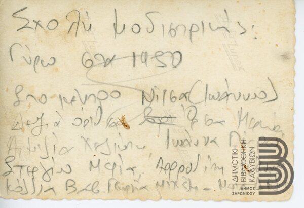 Στο πίσω μέρος της φωτογραφίας αναγράφεται: