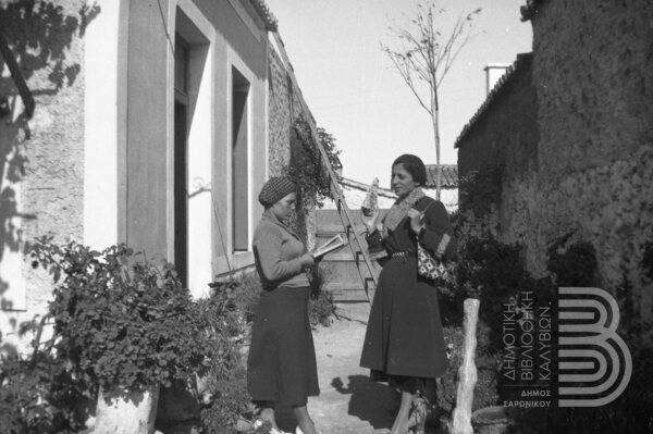 - Ψηφιοποιημένη Αρνητικό: Φωτογραφία γυναικών σε αυλή σπιτιού που η μία διαβάζει στην άλλη