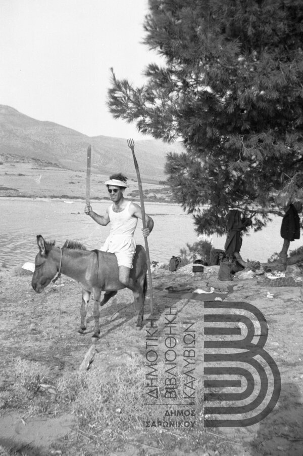 Ψηφιοποιημένη Αρνητικό: Φωτογραφία με νεαρό άντρα ιππαστί σε γαϊδούρι