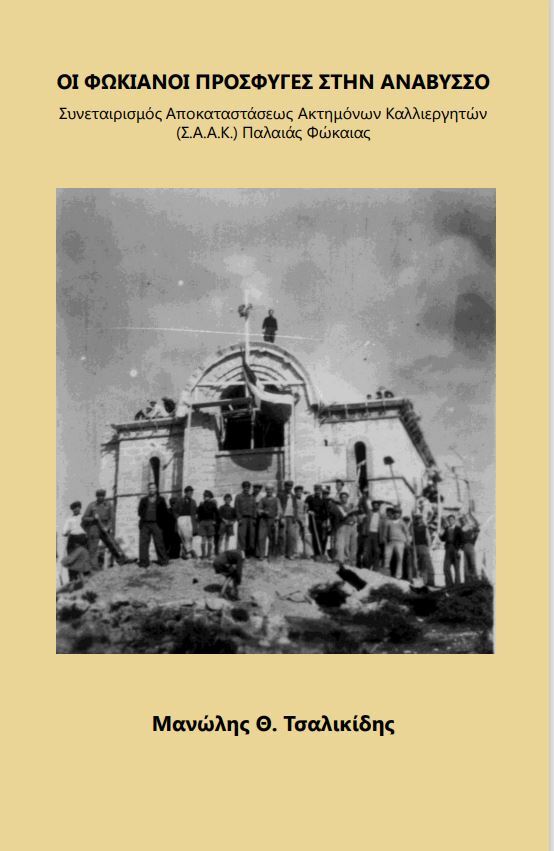 Τσαλικίδης, Μανώλης (1962...) [Συγγραφέας]. Οι Φωκιανοί πρόσφυγες στην Ανάβυσσο. Συνεταιρισμός Αποκαταστάσεως Ακτημόνων Καλλιεργητών (Σ.Α.Α.Κ.) Παλαιάς Φώκαιας