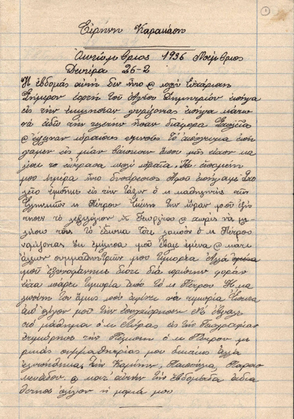 Περιγραφή: Ημερολόγιο Ειρήνης Καρακάση (pdf) [entire] Ξεφύλλισμα pdf