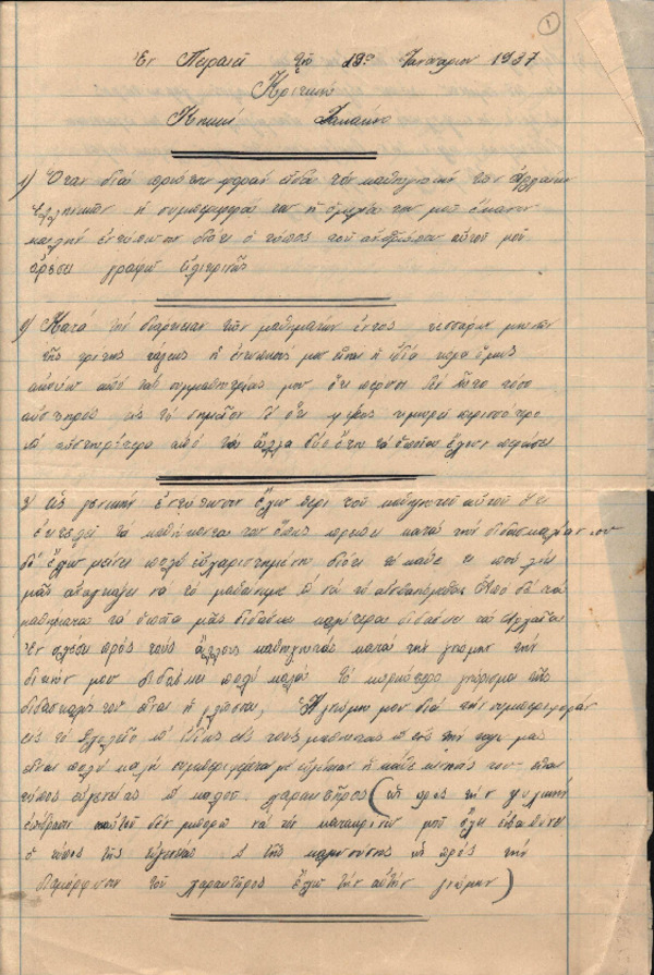 Απάντηση άγνωστου μαθητή σε ερωτηματολόγιο Χ. Πέτρου-Μεσογείτη [1937-01-19]