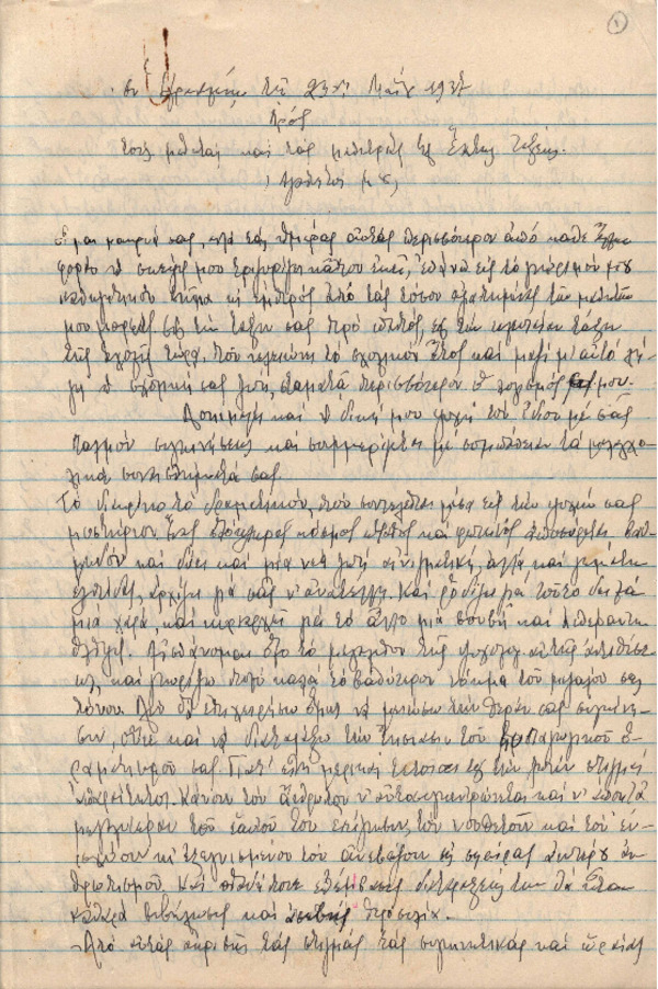 Επιστολή Χ. Πέτρου-Μεσογείτη προς τους μαθητές της Στ΄τάξης της Δημόσιας Εμπορικής Σχολής Πειραιώς [1937-05-23]