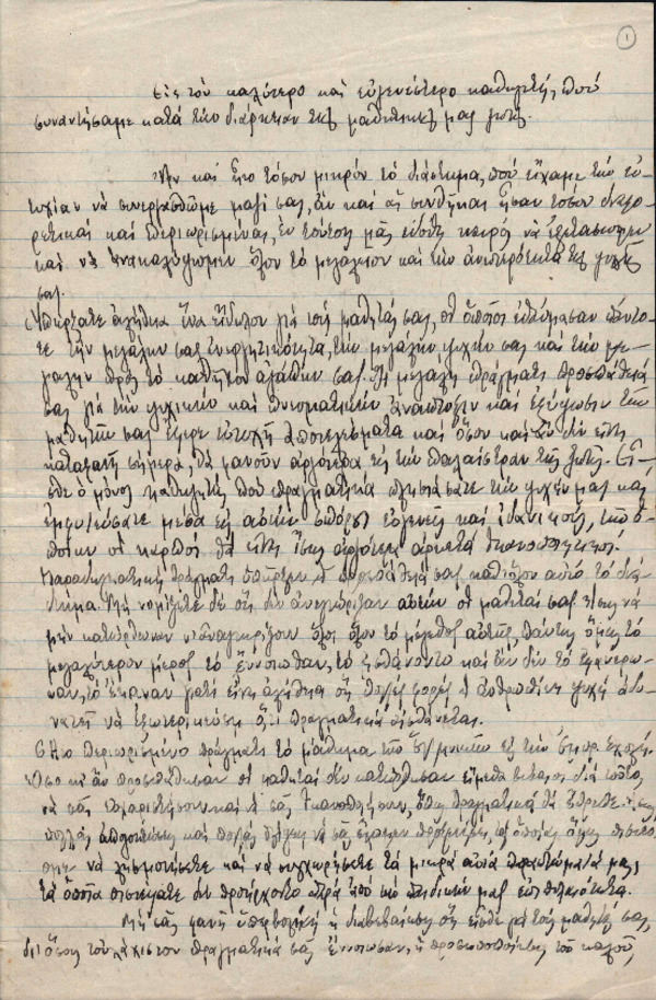 Επιστολή μαθητών της Στ' Τάξης της Δημόσιας Εμπορικής Σχολής Πειραιώς στον Χ. Πέτρου-Μεσογείτη