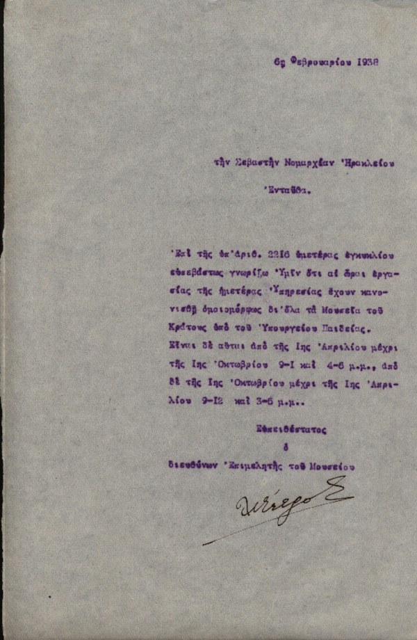 - Ωράριο λειτουργίας του Μουσείου
