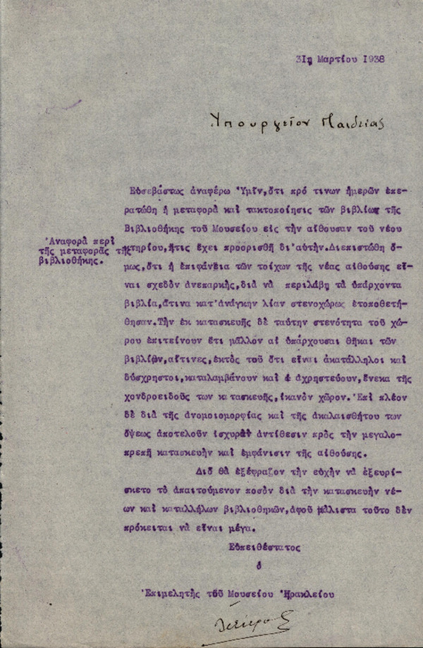 • Αναφορά περί της μεταφοράς βιβλιοθήκης