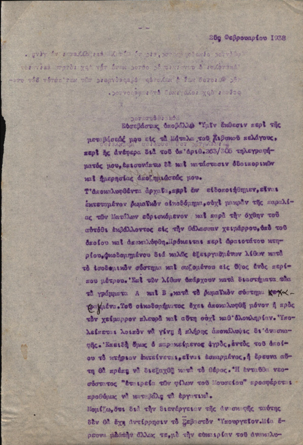 Αναφορά Χ. Πέτρου-Μεσογείτη με θέμα "Έκθεση αυτοψίας των αρχαιολογικών ευρημάτων στα Μάταλα" [1938-02-26]