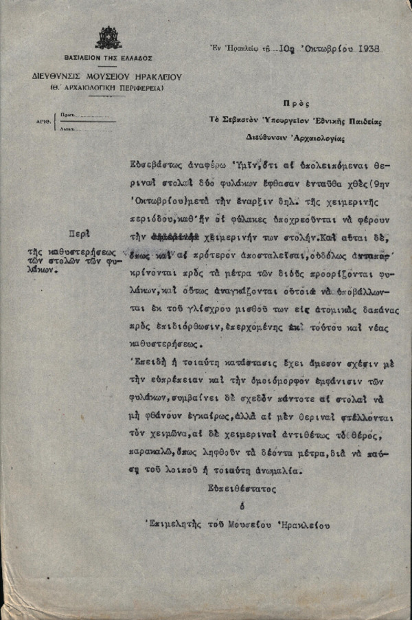 • Περί της καθυστερήσεως των στολών των φυλάκων