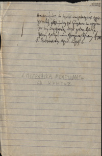 - Σημειώσεις Χ. Πέτρου-Μεσογείτη με θέμα "Επιγραφές από Κρήτη" [1939-11-11]