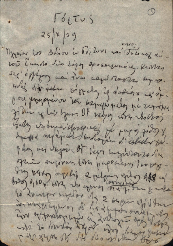 Σημειώσεις Χ. Πέτρου-Μεσογείτη με θέμα "Περιγραφή τάφων στη Γόρτυνα" [1939-09-25]
