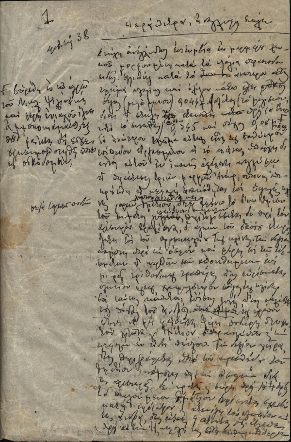 Σημειώσεις Χ. Πέτρου-Μεσογείτη με θέμα "Ανάγλυφη επιτύμβια στήλη με αριθμό ευρετηρίου 38"