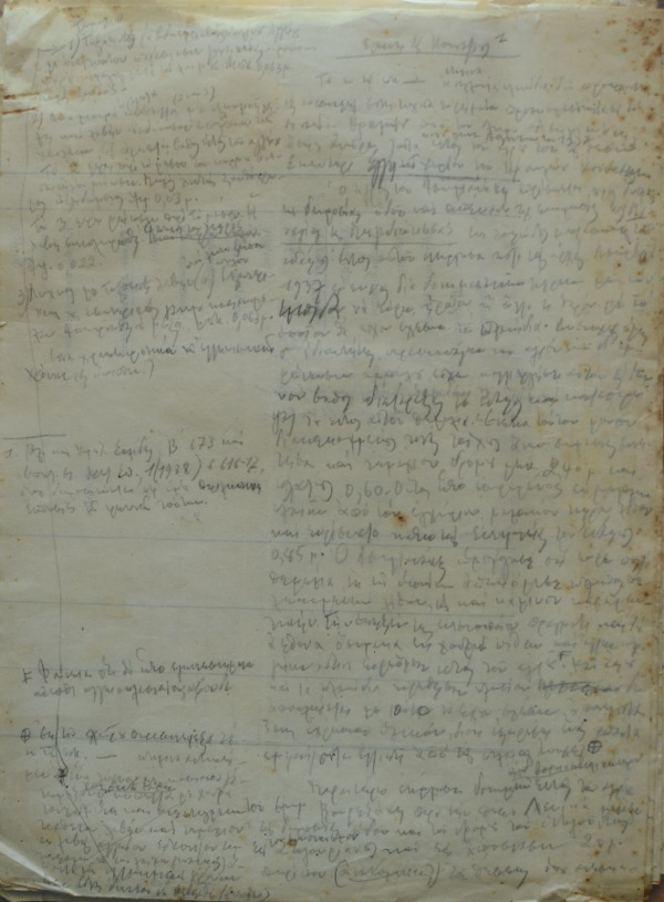 Σημειώσεις Χ. Πέτρου-Μεσογείτη με θέμα "Περιγραφή αρχαιολογικών ευρημάτων από την ανασκαφική δραστηριότητα στην Κρήτη" [1937-1939]