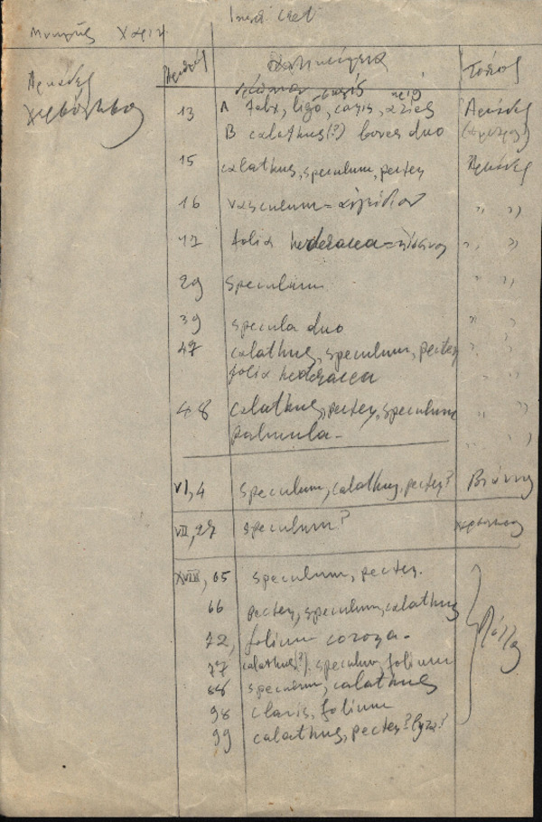 Σημειώσεις Χ. Πέτρου-Μεσογείτη με θέμα "Πίνακας αρχαιολογικών ευρημάτων"