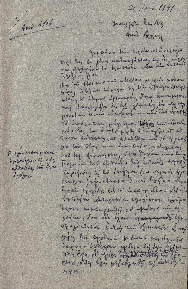 Επιστολή Χ. Πέτρου-Μεσογείτη προς το Υπουργείο Παιδείας-Διεύθυνση Αρχαιολογίας με θέμα "Περιγραφή της κατάστασης του Μουσείου Ναυπλίου κατά την παραλαβή του"