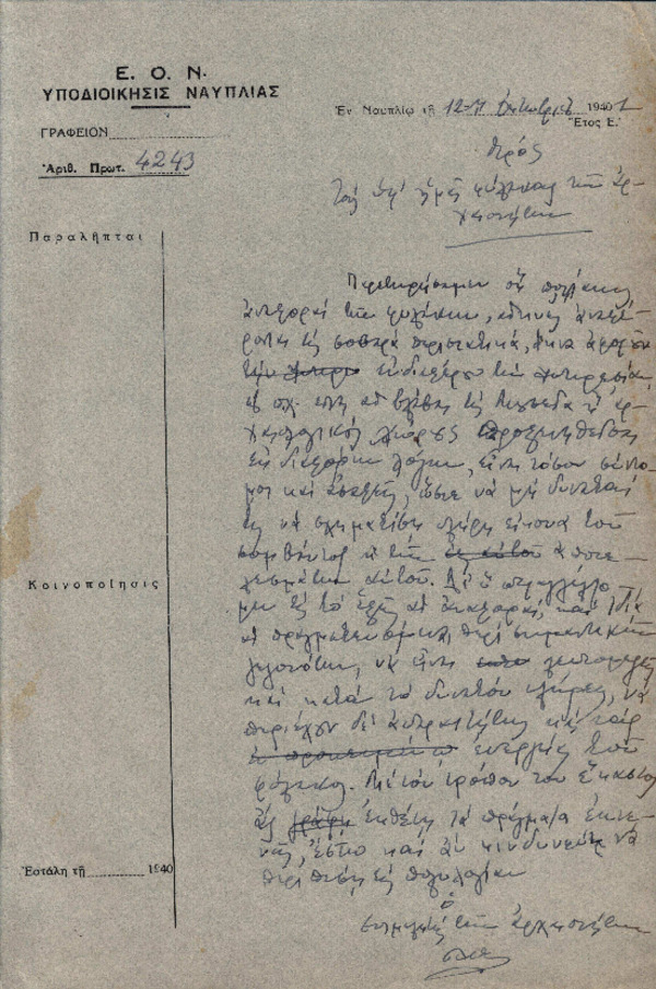 Επιστολή Χ. Πέτρου-Μεσογείτη προς τους φύλακες αρχαιοτήτων της Θ' περιφερείας με θέμα "Οδηγίες για την σύνταξη αναφορών" [1941-10-12]