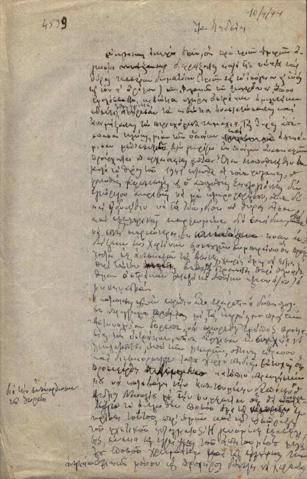 Επιστολή Χ. Πέτρου-Μεσογείτη προς το Υπουργείο Παιδείας με θέμα "Διάρρηξη στις Φυλακές Λεονάρδου" [1944-04-10]