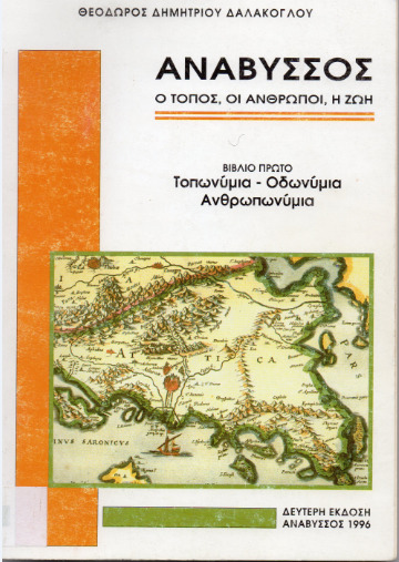 Ανάβυσσος, ο τόπος, οι άνθρωποι, η ζωή : τοπωνύμια, οδωνύμια, ανθρωπωνύμια ή "λεξικό ονομάτων" περιοχής Αναβύσσου - 2η έκδ.. - Ανάβυσσος: Αυτοέκδοση, 1996 - Identifier: 487
