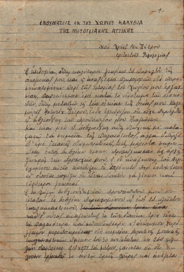 Ενθυμήσεις εκ του χωρίου Καλύβια της Μεσογειακής Αττικής