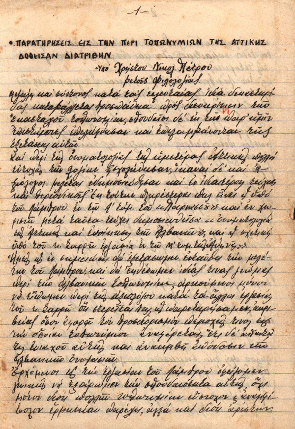 - Παρατηρήσεις εις την περί τοπωνυμίων της Αττικής δοθείσαν διατριβήν