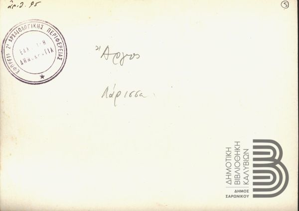 - 1 ασπρόμαυρη φωτογραφία : 2 όψεις, Σφραγίδα Αρχαιολογικής Περιφέρειας