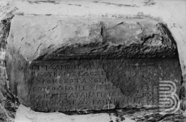 - Φωτογραφία πλάκας με σωζόμενο τμήμα επιγραφής