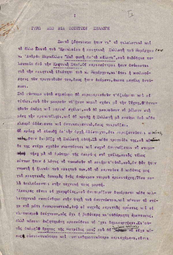 Κριτική Χ. Πέτρου-Μεσογείτη στο έργο του Ανδρέα Μαρκέλλου "Μια φωνή απ' το πέλαγο"