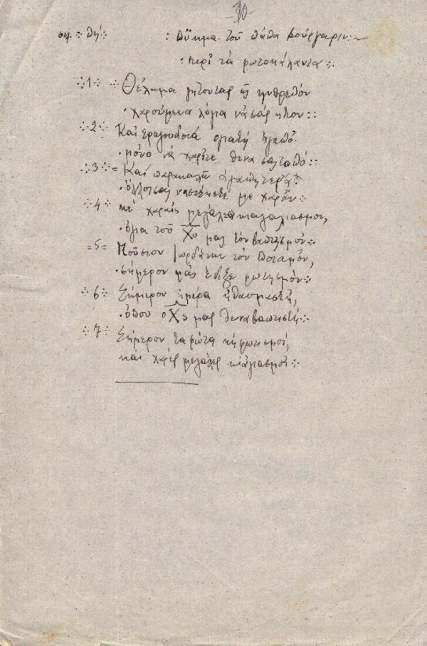 Μεταγραφή ποιήματος παλαιού χειρογράφου με τίτλο "Περί τα φωτοκάλαντα"