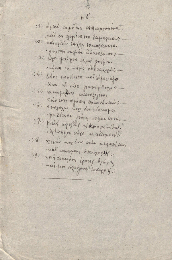 Μεταγραφή ποιήματος παλαιού χειρογράφου με πρώτο στίχο "Αφτάν τα μάθεια τα πλουμησμένα"