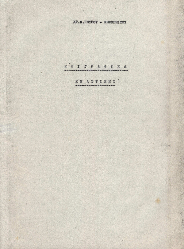 - Επιγραφικά εξ Αττικής (δακτυλογραφημένο)