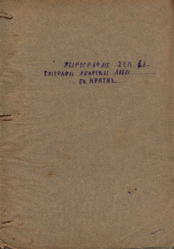 Περιγραφή: Προσχέδιο μελέτης "Επίγραφοι νεκρικοί λίθοι εκ Κρήτης" (pdf) [entire] Ξεφύλλισμα pdf