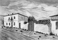Φωτογραφία του πίνακα ζωγραφικής με άποψη της παλαιάς Κοινότητας Καλυβίων