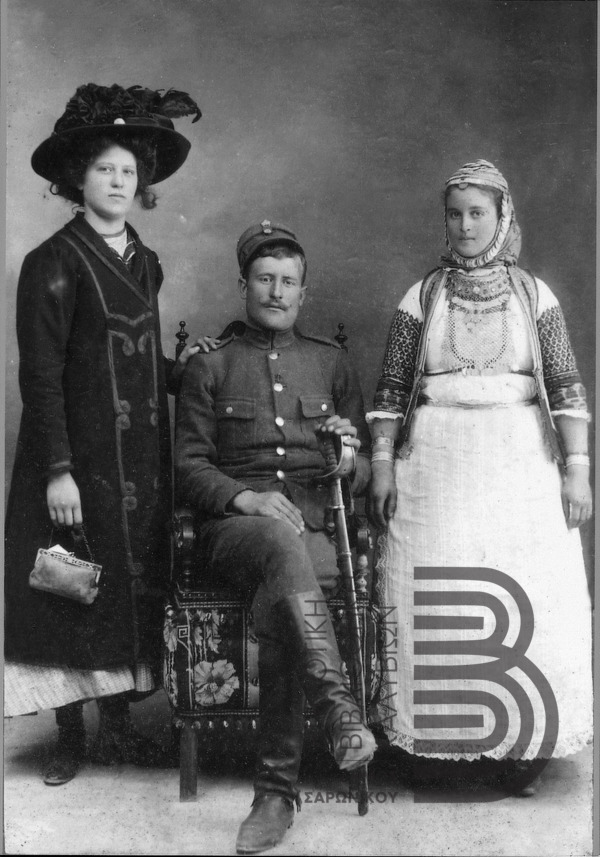 - Φωτογραφία του Ερμή Φιλίππου και της αρραβωνιασμένης αδελφής του, Μαρίας, με μια Αθηναία φίλη τους