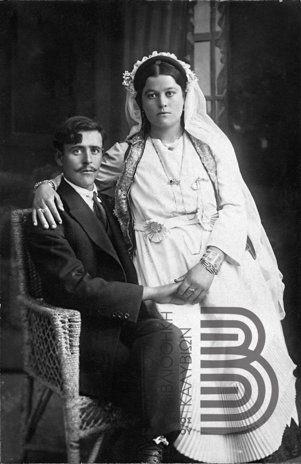 Φωτογραφία ζευγαριού νεονύμφων, Σπύρος και Καλομοίρα Μάρα