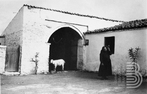 Φωτογραφία της μητέρας του Χρήστου Πέτρου-Μεσογείτη, Μαρίας, στην αυλή του σπιτιού της