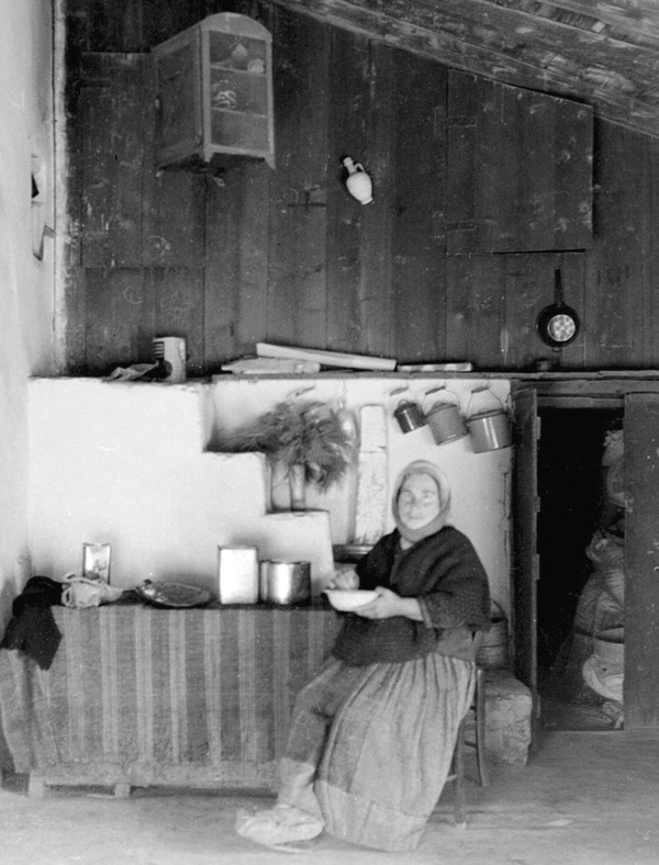 Φωτογραφία της μητέρας του Χρήστου Πέτρου-Μεσογείτη στο εσωτερικό του σπιτιού της (κουζίνα)