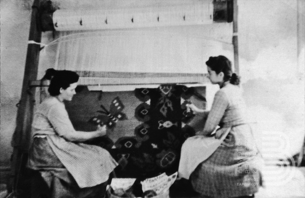 Φωτογραφία με γυναίκες που υφαίνουν στον αργαλειό