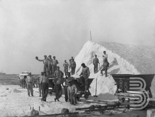 Photo of Kalivian workers at the salt-marshes in Anavyssos (Αγγλική)