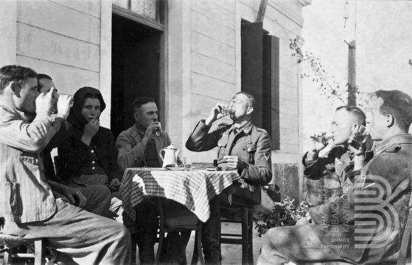 Photo of German soldiers with their commander in the yard of requisitioned house, belonging to Evangelos Dedes (Αγγλική)