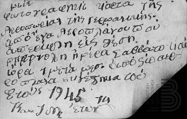 Περιγραφή: Κείμενο Ιωάννη Σοφρώνη με πληροφορίες ανεύρεσης της φωτογραφίας (tif) [side2]
