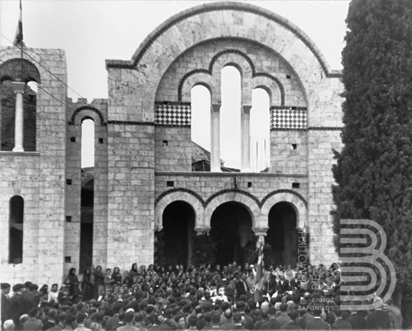 - Φωτογραφία εορτασμού της 25ης Μαρτίου στο προαύλιο της εκκλησίας του Ευαγγελισμού της Θεοτόκου [1938-3-25]