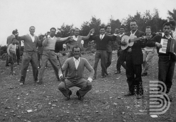 Photo of dance in Mount Pani. Sotiris Kollias is playing the guitar and Panayotis Kambas "accordeon" (Αγγλική)