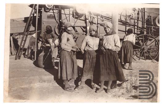 - Φωτογραφία 3 γυναικών μπροστά από την αλωνιστική μηχανή