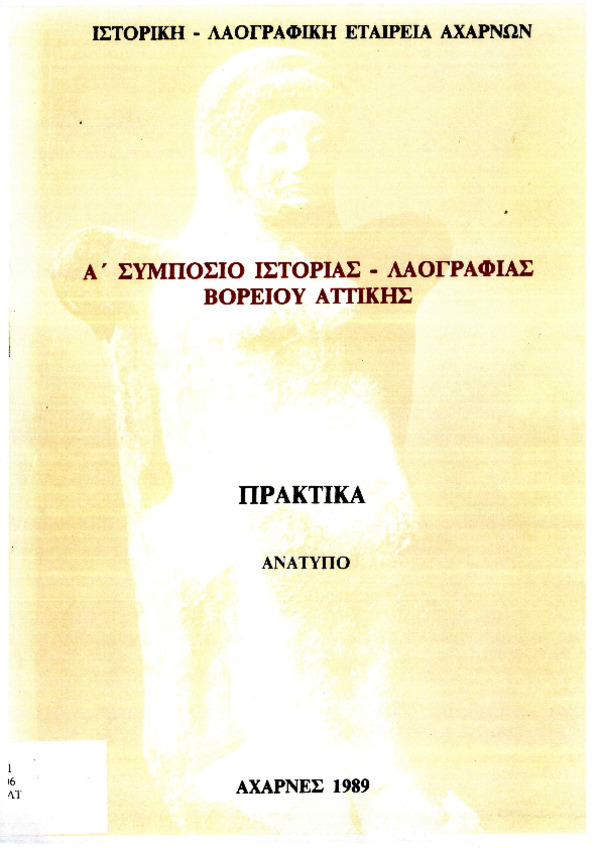 3. Ψηφιοποιημένο Βιβλίο: Α' Συμπόσιο Ιστορίας - Λαογραφίας Βορείου Αττικής