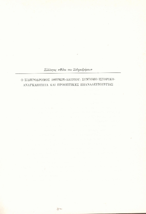 Ψηφιοποιημένο Έγγραφο: Ο σιδηρόδρομος Αθηνών - Λαυρίου: σύντομο ιστορικό - αναγκαιότητα και προοπτικές επαναλειτουργίας - Identifier: 7654