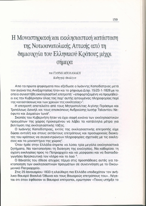 3. Ψηφιοποιημένο Έγγραφο: Η μοναστηριακή και εκκλησιαστική κατάσταση της Νοτιοανατολικής Αττικής από τη δημιουργία του ελληνικού κράτους μέχρι σήμερα