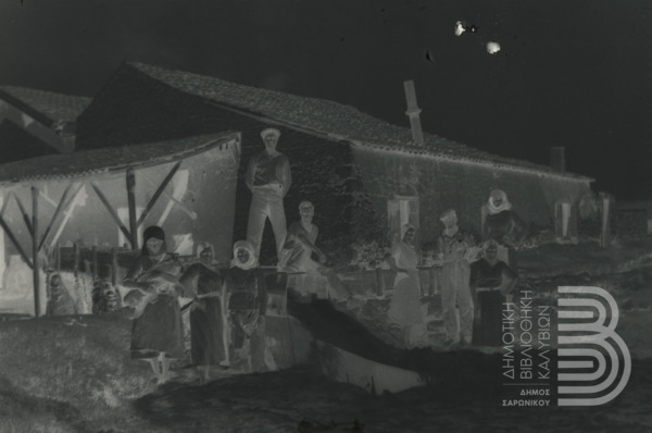 Ψηφιοποιημένη Αρνητικό: Φωτογραφία εργατών και εργατριών σε αυλάκι με τρεχούμενο νερό