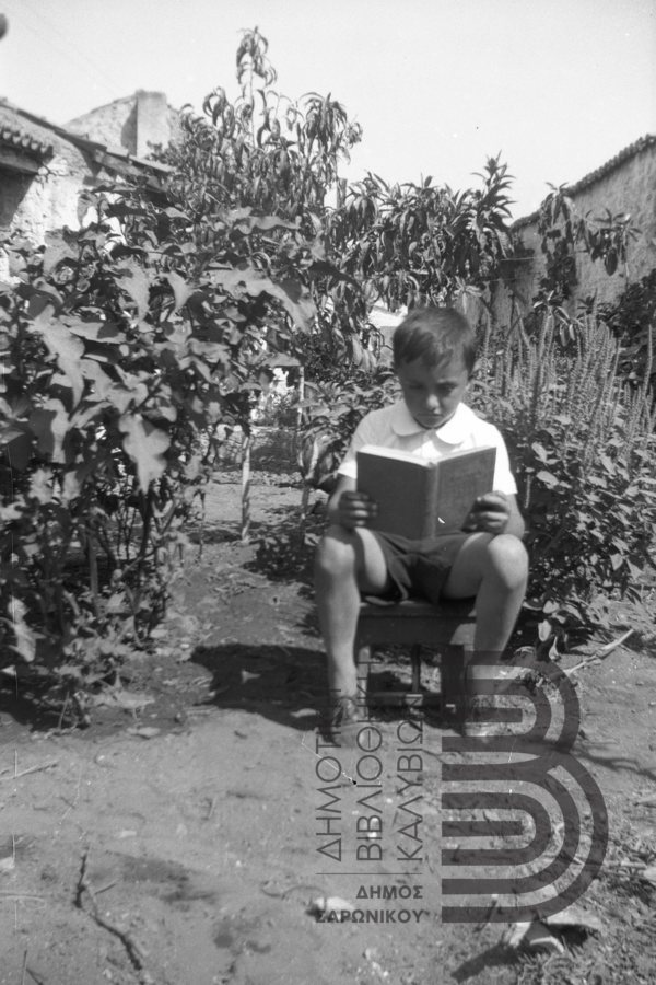 - Ψηφιοποιημένη Αρνητικό: Φωτογραφία με αγοράκι που διαβάζει στην αυλή του σπιτιού του