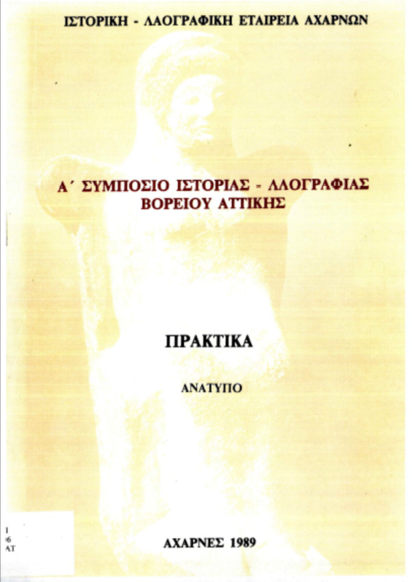 - Ιστορική και Λαογραφική Εταιρεία Αχαρνών [Διοργανωτής]. Α΄ Συμπόσιο Ιστορίας - Λαογραφίας Βορείου Αττικής